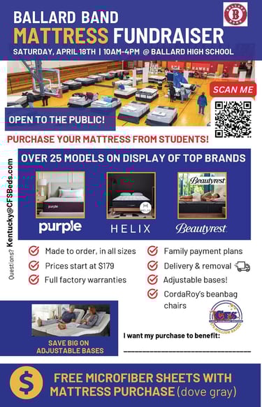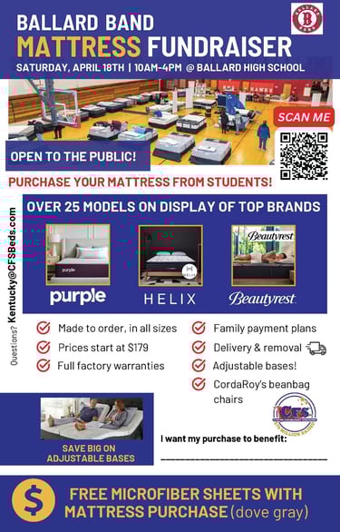 Mattress Sale April 18th 10am-4pm Ballard High School Large Gym